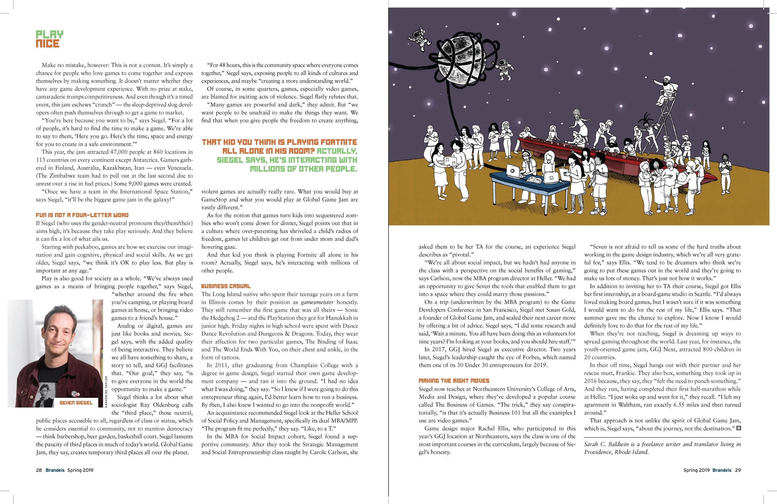 Editorial spread for Brandeis Magazine (2019)