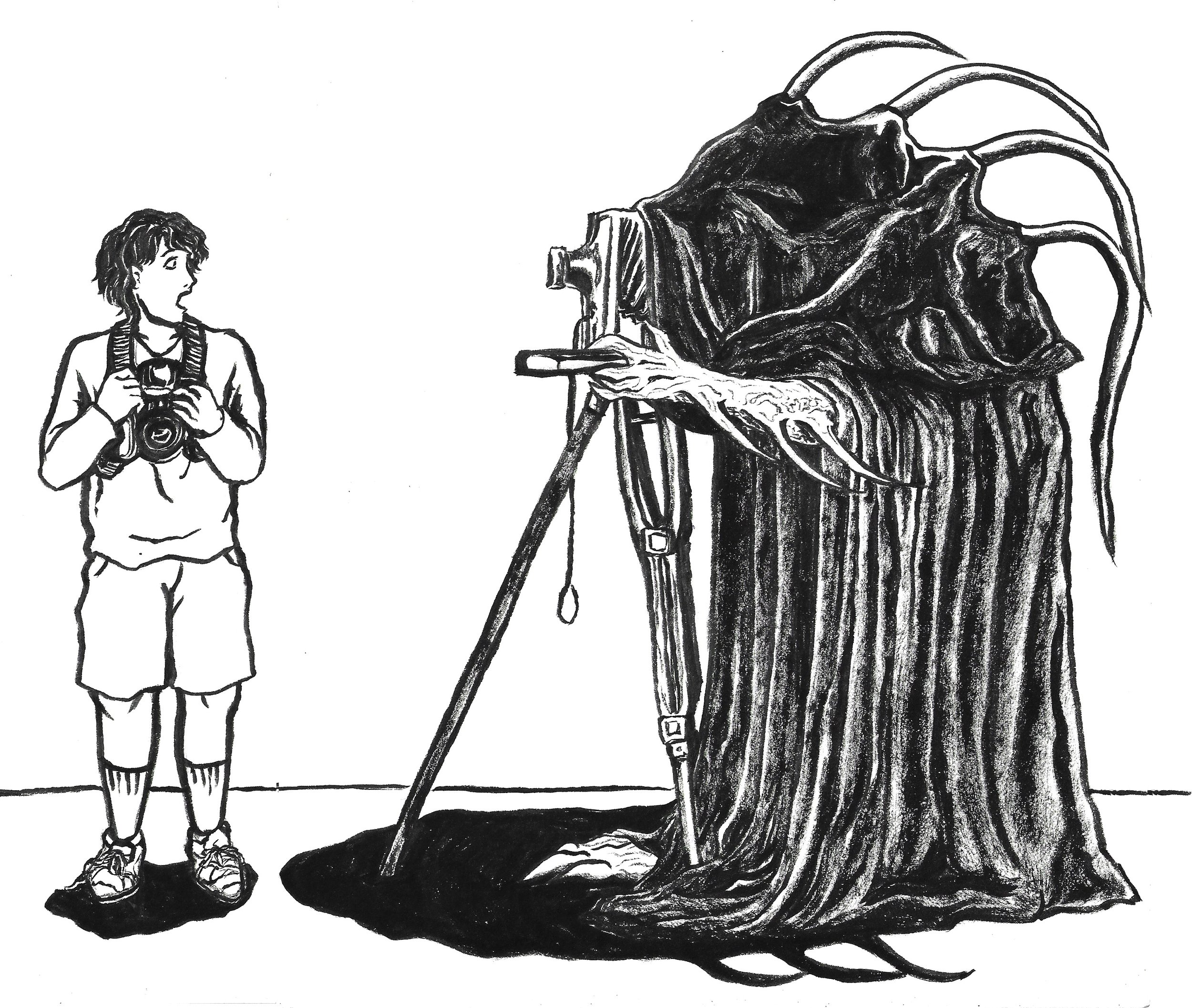 Drawing to announce a photography exhibition happening in SPRMRKT’s Robertson Quay outlet that summer