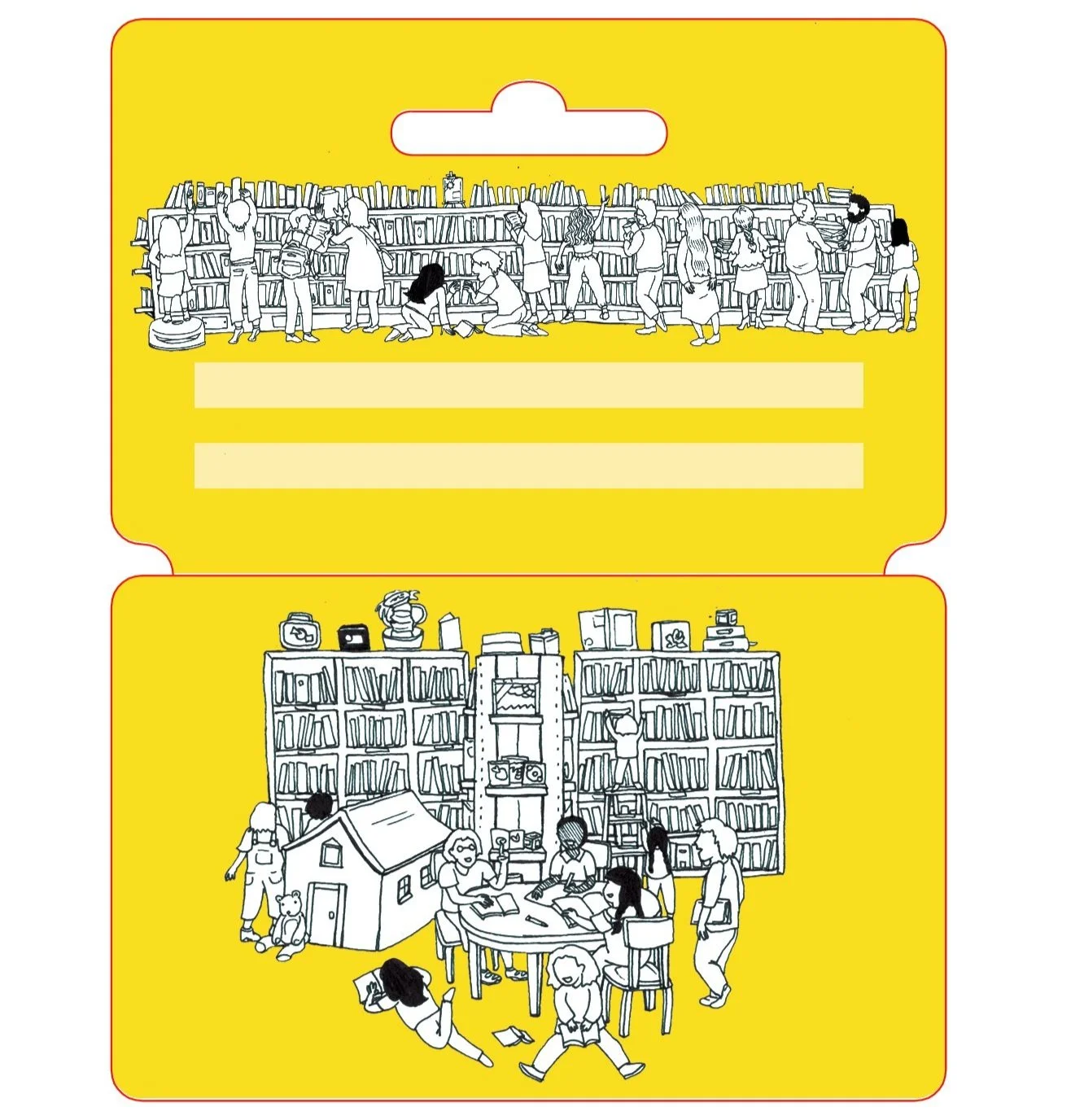 Library card design for Half Price Books in Dallas, Texas. As a bookworm, this was very exciting. The drawing was done entirely freehand.