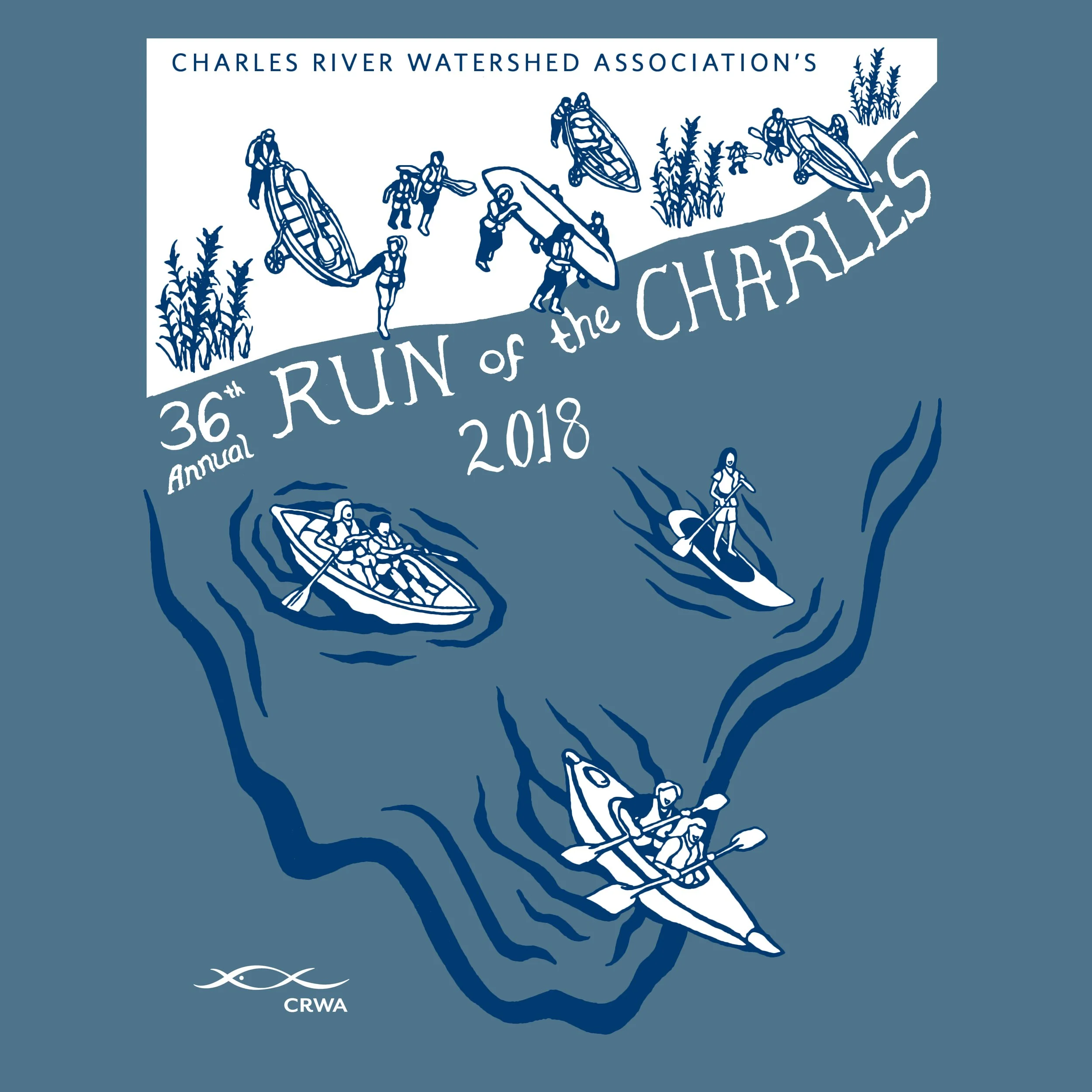 T-Shirt design for the 36th annual Run of the Charles for the Charles River Watershed Association in 2018. Sadly, I lost the picture of the race participants wearing the shirts that CRWA kindly sent me.